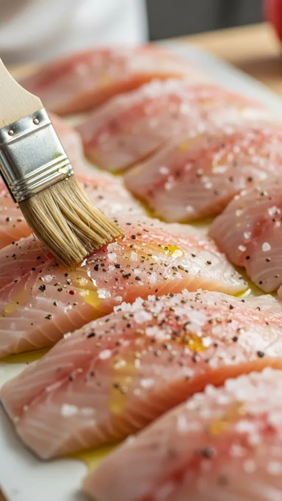Brush the fish lightly with oil or butter, then season evenly on both sides.