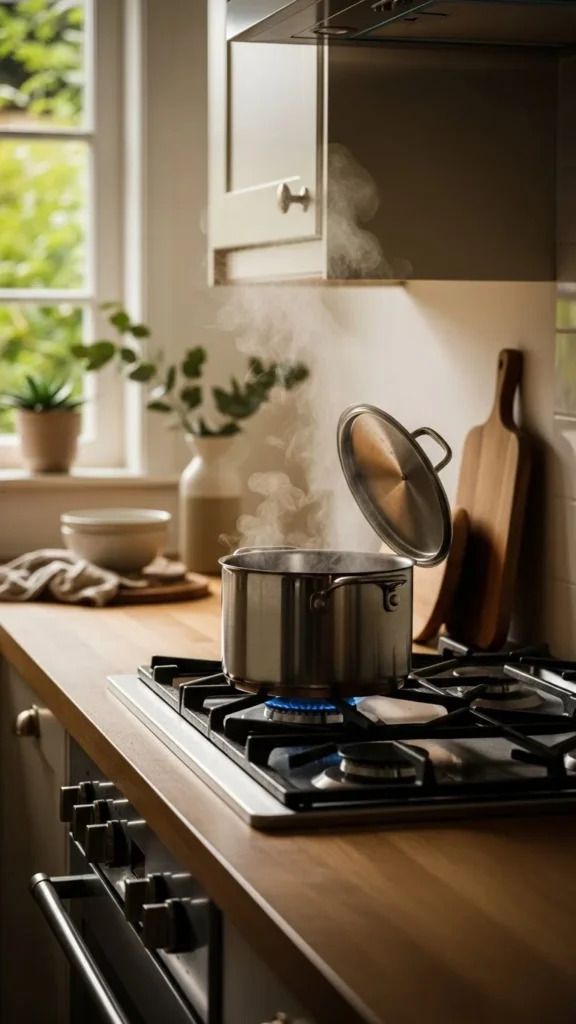 - Once boiling, reduce heat to low and cover with a tight lid.