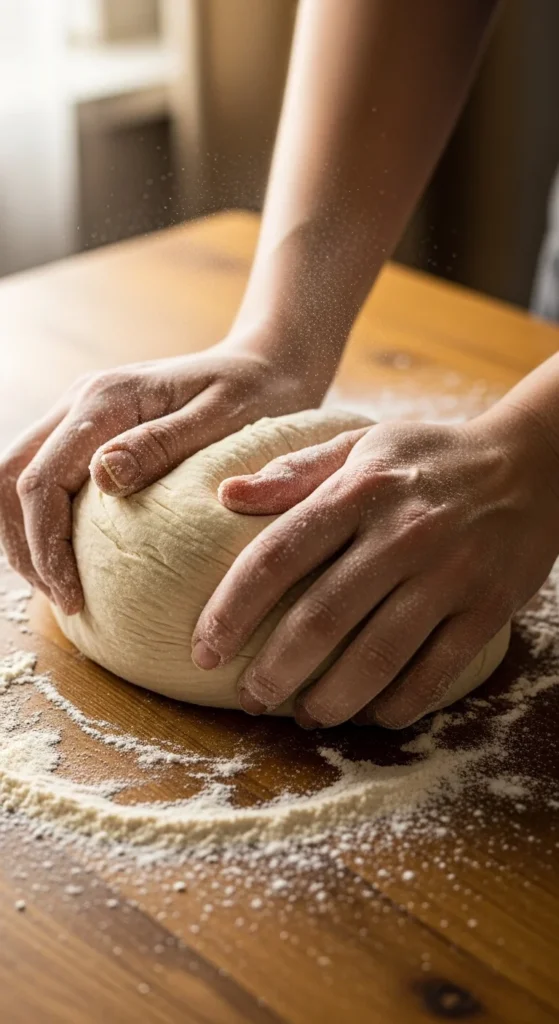 If the dough sticks too much, dust your hands lightly. Add flour slowly. A small amount is enough.