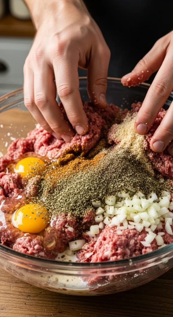 Always mix these ingredients first, then add the meat at the end. This reduces overmixing and keeps the texture light instead of dense.