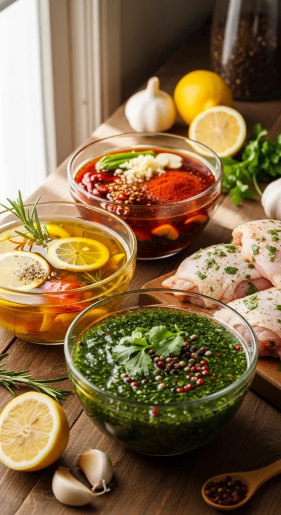 Combining herbs with garlic and citrus creates one of the most reliable flavor profiles for marinated chicken recipes.