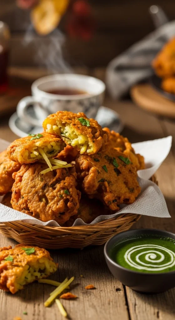 Aloo Pakoras bring instant comfort to any gathering. They are simple but always loved. The crisp batter and soft potato inside make them perfect for snacking. These are great when you need something quick yet satisfying.
