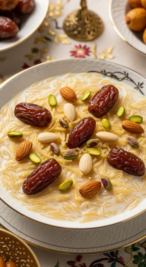 Sheer Khurma is the dessert many people wait for all year. The creamy milk, toasted vermicelli, and dates create a comforting sweetness that feels nostalgic. It is often the first sweet served after Eid prayers. One spoonful brings warmth and familiarity that truly feels like Eid.