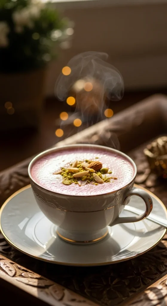 Kashmiri Pink Chai is not just tea, it is an experience. The beautiful pink color always catches attention on the table. Its creamy, lightly salty taste feels unique compared to regular chai. Serving this to guests makes the moment feel calm and special after a big meal.