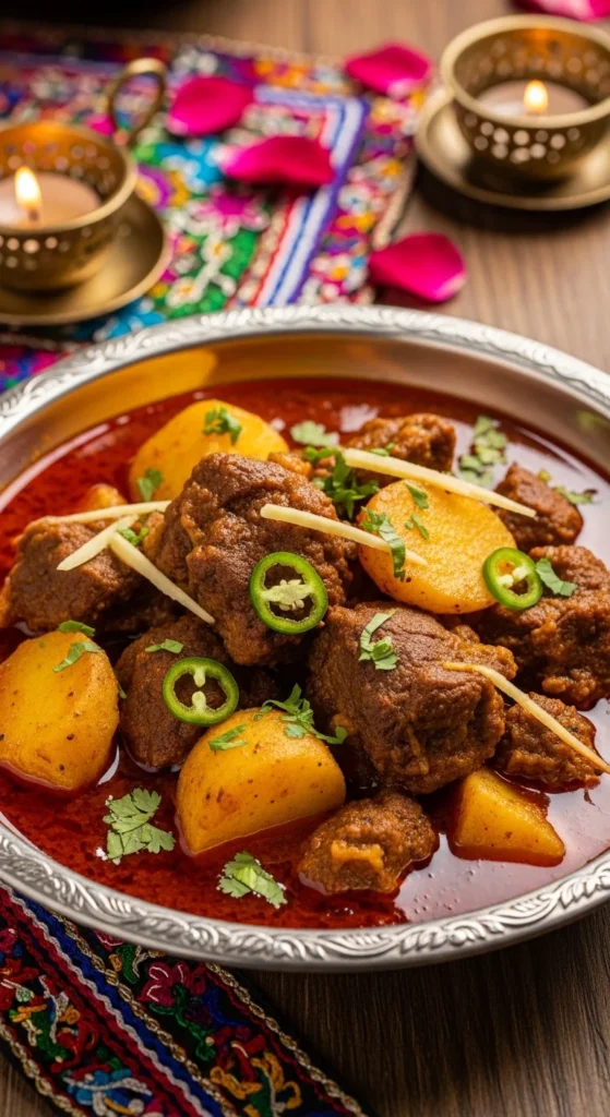Aloo Gosht is one of those dishes that instantly feels like home. Soft potatoes soak up the meaty gravy and every bite tastes comforting. It is not flashy, but everyone quietly goes back for seconds. This is the kind of curry families love because it is simple, hearty, and deeply satisfying on Eid.