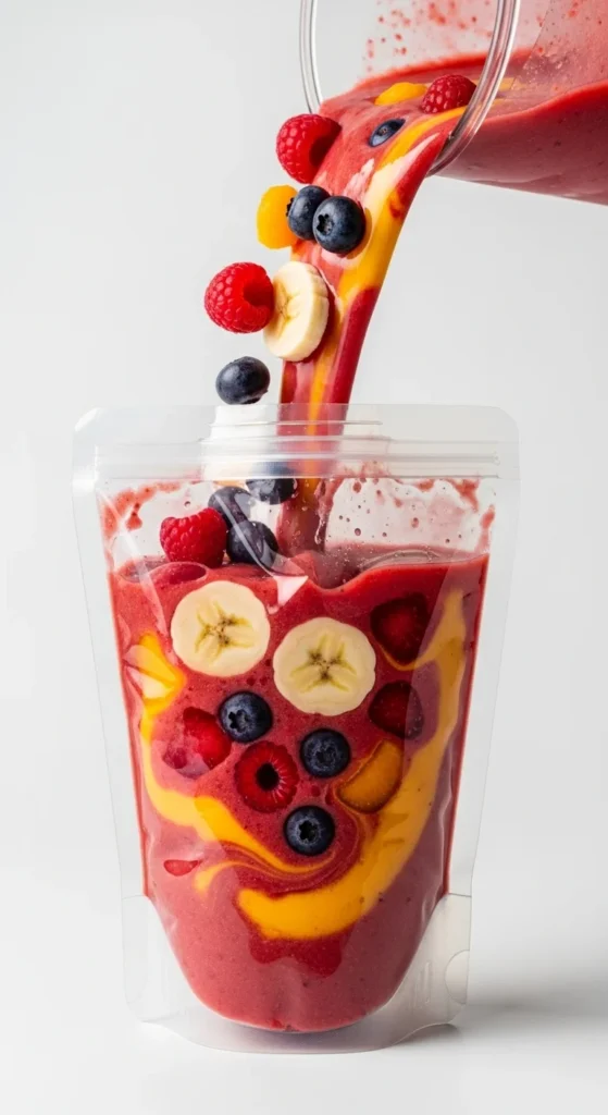- Pour into a reusable smoothie pouch or small cup.