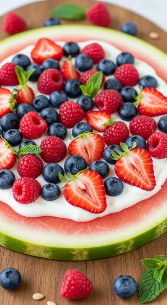 24. Watermelon Pizza with Yogurt and Berries