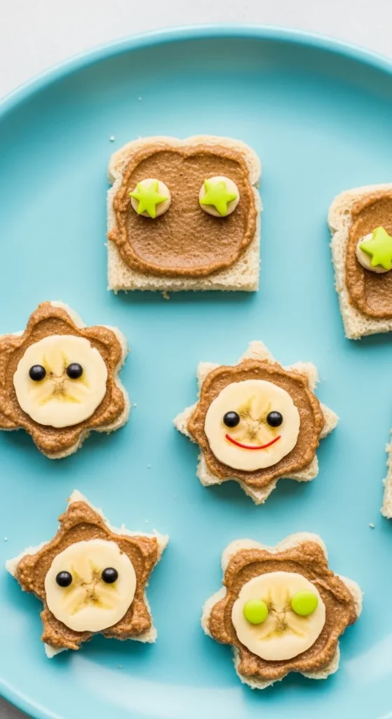 Serve as small sandwich pieces so little hands can manage them. The banana makes it naturally sweet, so no extra sugar is needed.