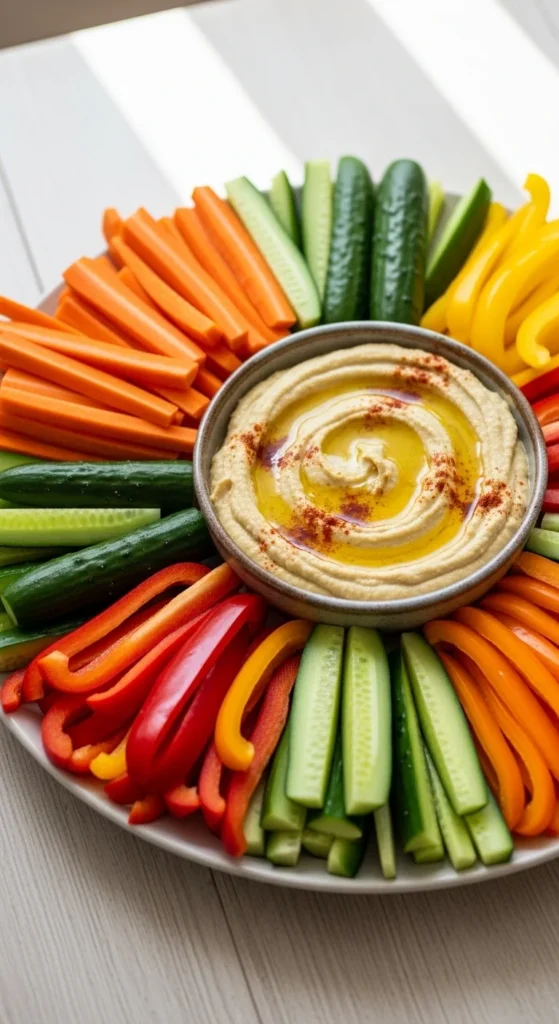 Veggie sticks and hummus are often recommended in simple healthy recipes for kids because they build the habit of eating vegetables early. The dip makes all the difference for picky eaters.