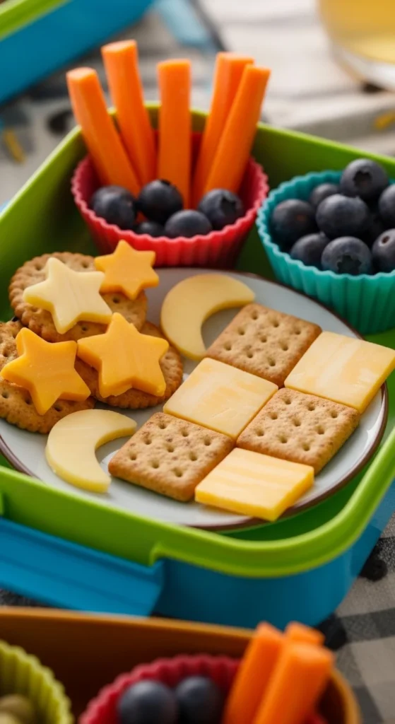 Serve it like a tiny snack board. Let kids stack their own cracker and cheese bites so they feel involved while eating.