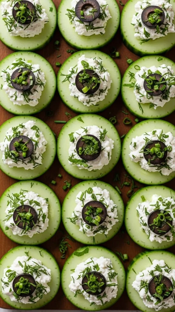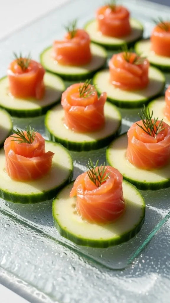 Light, refreshing, and absolutely elegant, these salmon cucumber rounds offer a crisp base topped with savory smoked salmon. The combination feels refreshing while still offering richness. They’re quick to assemble and perfect for guests who enjoy balanced flavors with a touch of sophistication. They also bring beautiful color to the appetizer table.