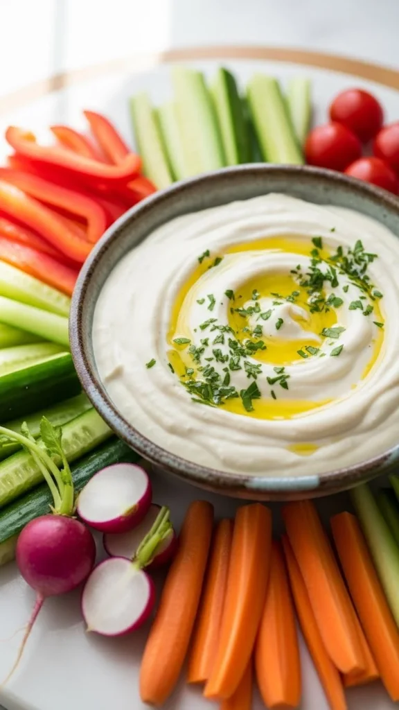 19. Greek Yogurt Dill Dip with Vegetable Sticks