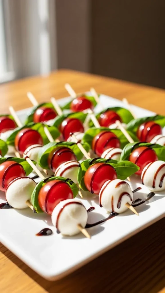 2. Mini Caprese Skewers with Balsamic Drizzle