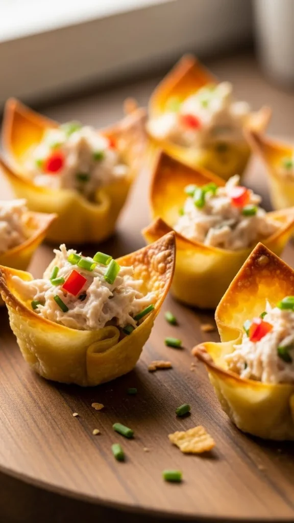 These wonton cups deliver a delightful crunch with a savory chicken filling that guests love. The cups bake until extra crisp, holding the creamy chicken mixture perfectly. They’re great for parties because they look fancy but are simple to assemble. Each bite is small, satisfying, and very easy to pick up.