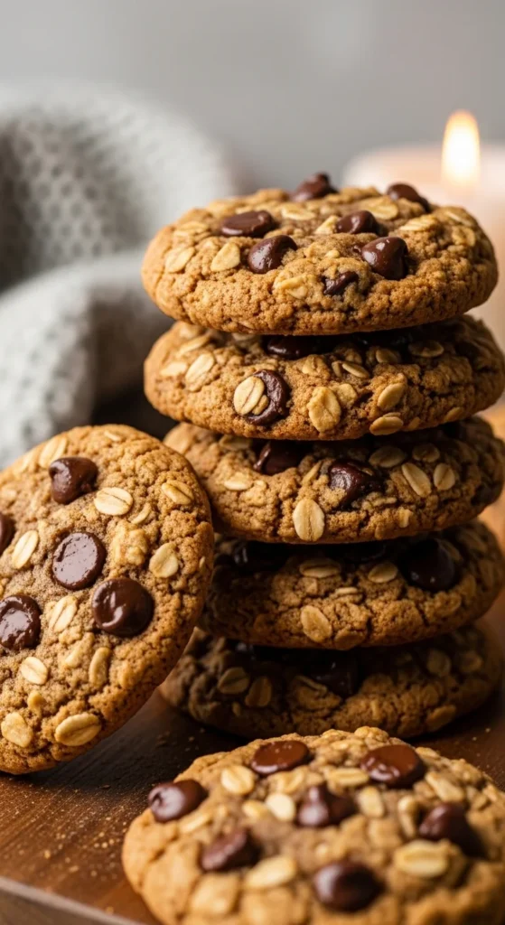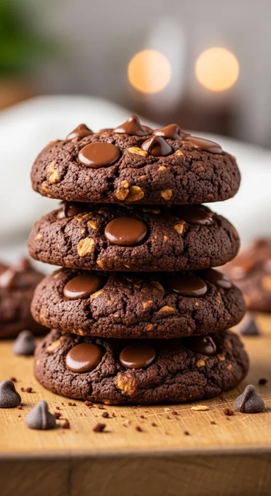 These cookies take things further by adding cocoa into the dough along with chocolate chips, giving you a deeper chocolate flavor in every bite. The oats keep the texture hearty, while the chocolate creates that soft, gooey center people look for in a cozy cookie.
