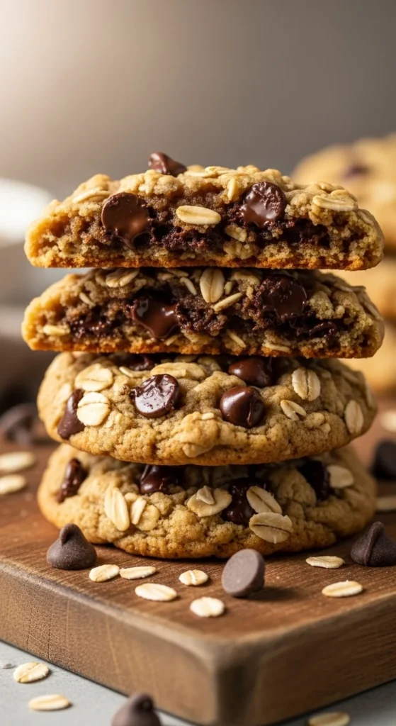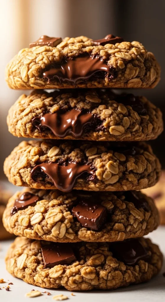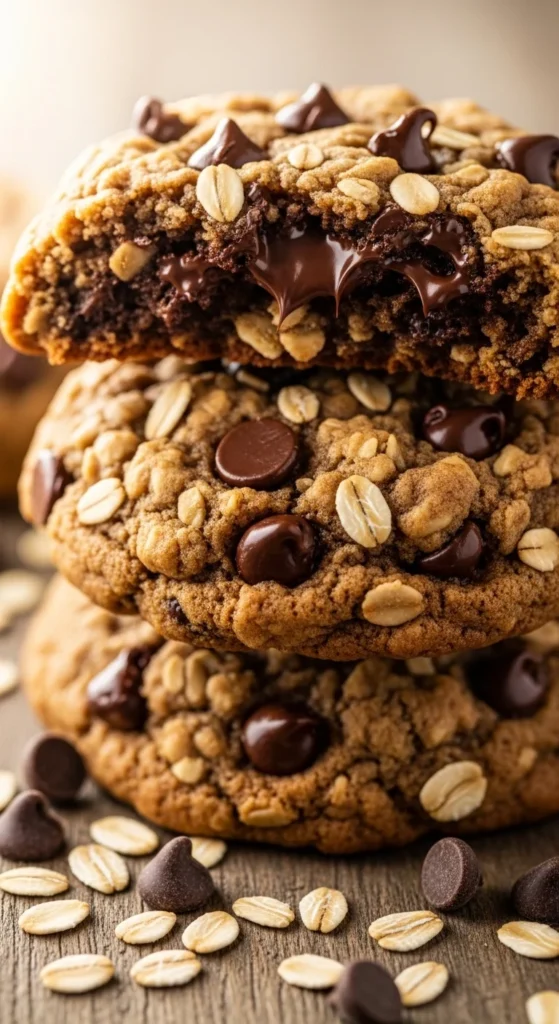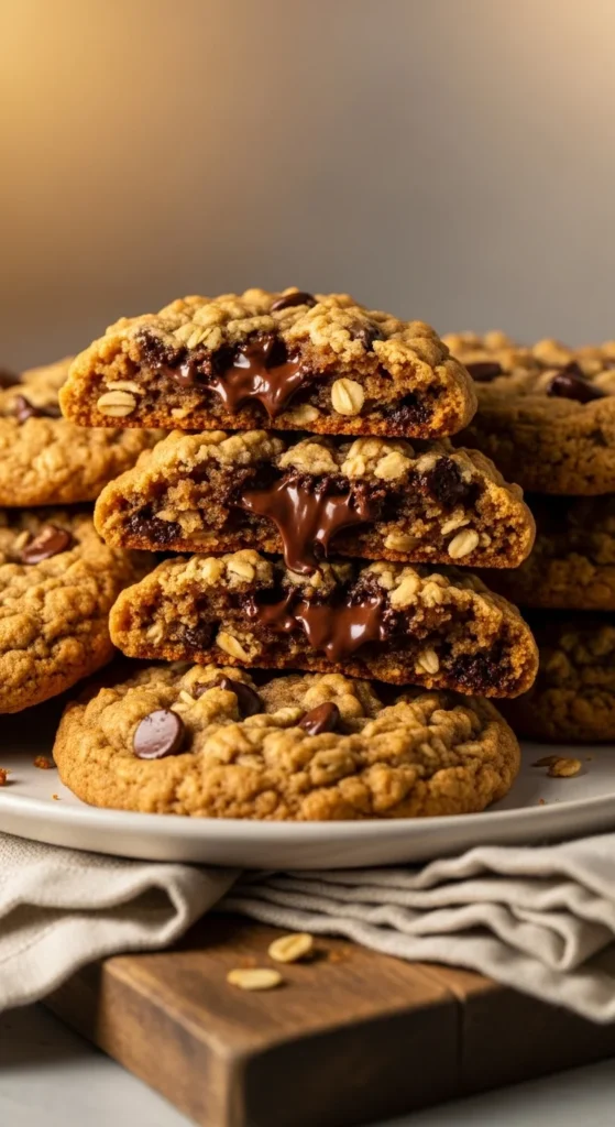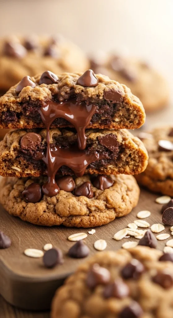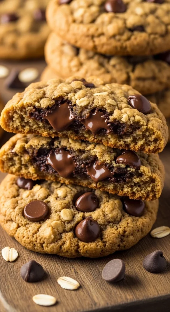 These cookies push the chocolate ratio higher, creating gooey pockets throughout. Research shows that using around 1.5–2 cups of chocolate gives that rich, melty center while still letting the oats hold the structure.