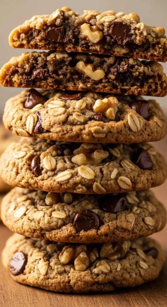 Adding walnuts gives these cookies a slightly crunchy texture that balances the soft, chewy base. The combination of oats, chocolate, and nuts creates a more filling cookie that feels hearty and satisfying.