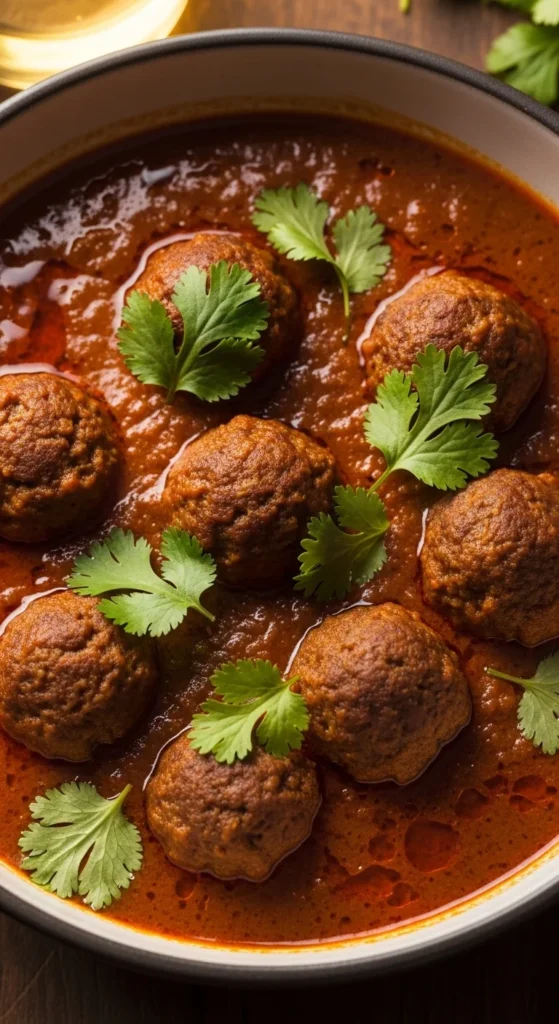 Beef kofta curry looks like a special-occasion dish but cooks fairly quickly. Small meatballs cook faster than large meat cuts. The gravy uses basic spices and comes together in one pan. This is helpful when you want a red-meat dish without long cooking hours.