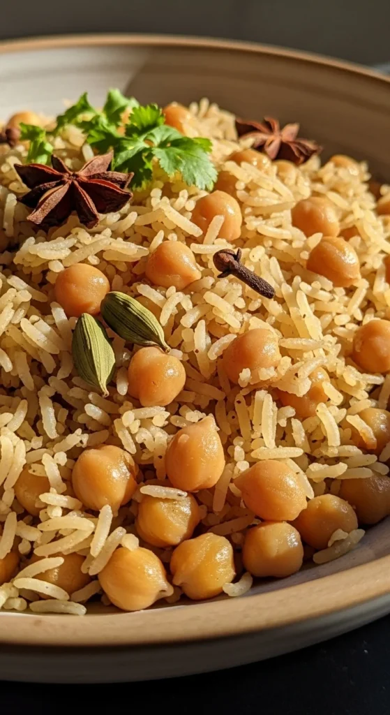 Kabuli chickpea pilaf is a great choice when you want something filling but simple. Chickpeas add protein and make it suitable for guests who prefer less meat. It cooks in one pot and uses gentle spices. This makes it practical for a busy Eid kitchen.