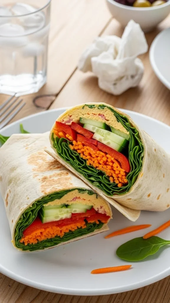 This wrap is easy to assemble and travels well. Hummus acts as both spread and filling, keeping the wrap satisfying without extra sauces.