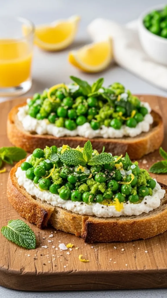 This toast is simple but filling. Ricotta gives creaminess, peas add texture, and it comes together in minutes.