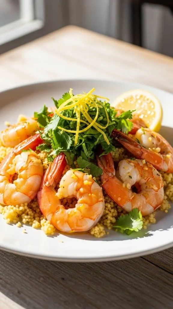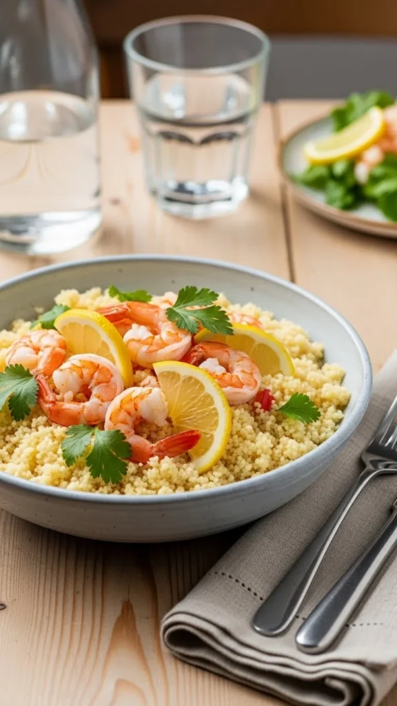 This lunch works when you want something fast but cooked properly. Shrimp cooks quickly, couscous needs almost no effort, and lemon keeps everything from feeling heavy. It is filling without slowing you down afterward.