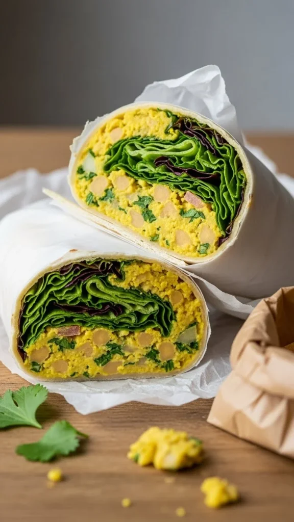 This wrap is simple, filling, and easy to pack. Chickpeas provide substance, and yogurt keeps the filling moist without being heavy. It holds together well, making it useful for work lunches.