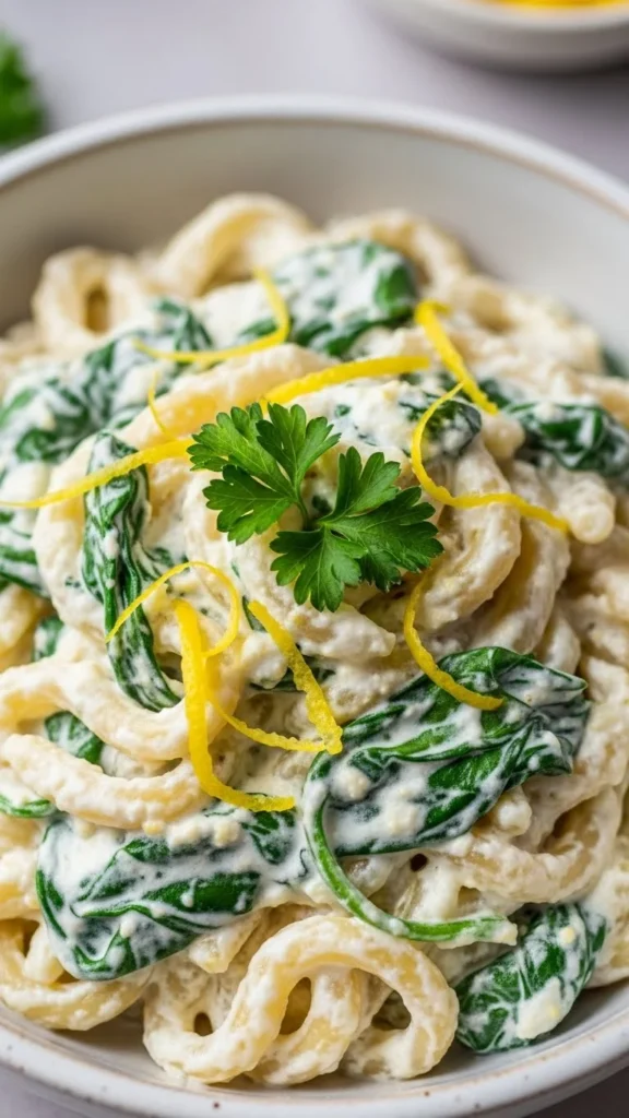 5. Creamy Ricotta Pasta with Spinach and Lemon Zest