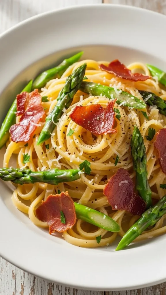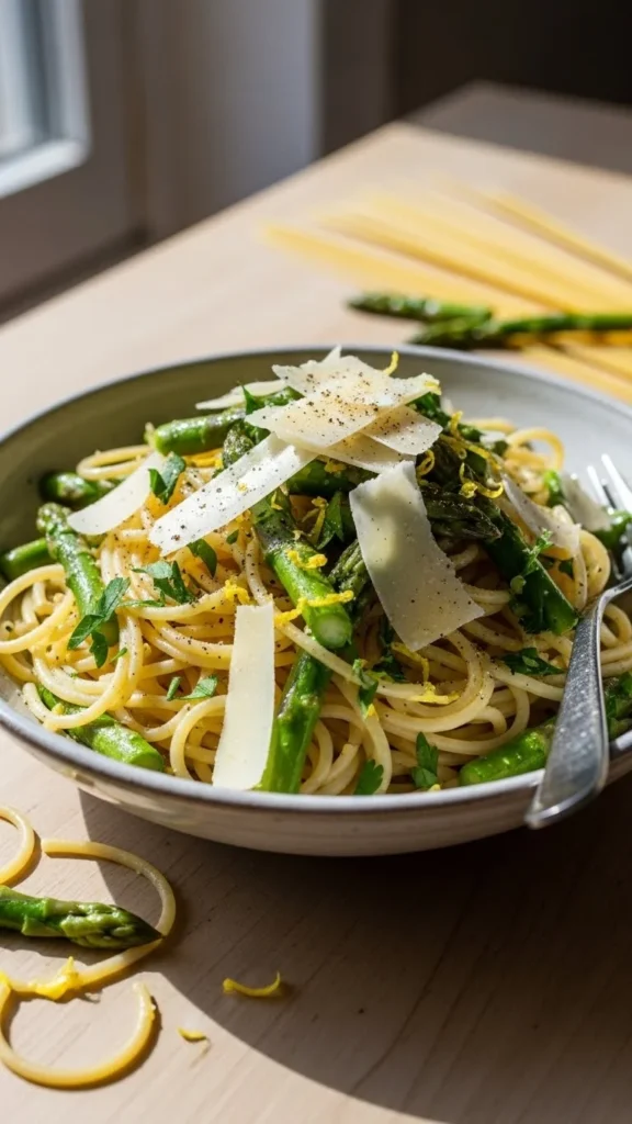 This pasta keeps things simple and clean. Lemon brightens the dish, asparagus gives it crunch, and olive oil ties everything together without weighing it down. It is a good choice when you want something fresh but still comforting.