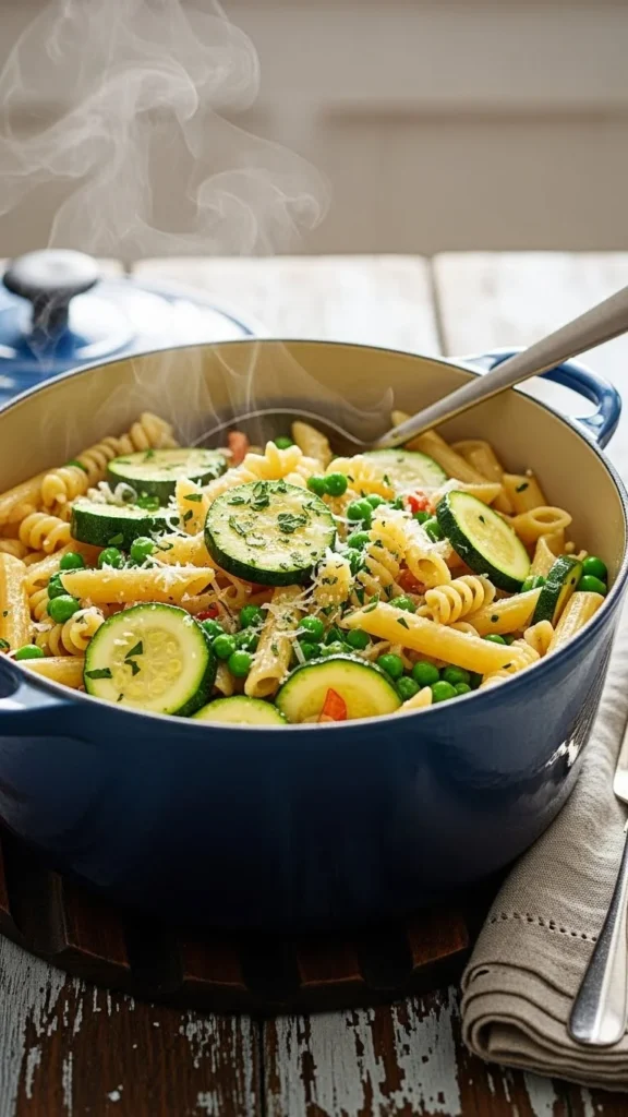 This recipe keeps things simple and minimizes cleanup. The pasta cooks directly with the vegetables, absorbing their flavor and creating a natural sauce without extra steps.