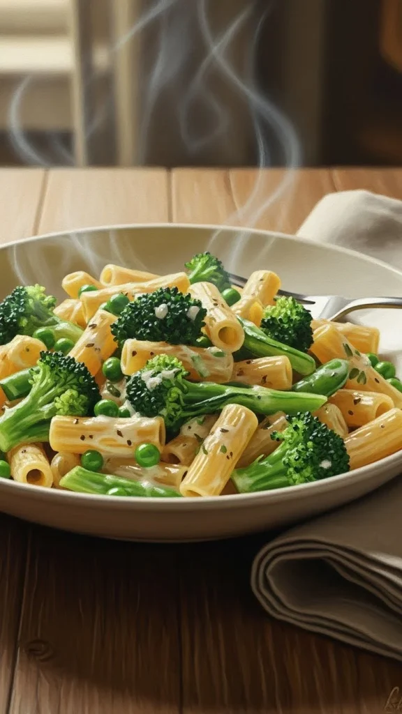 This is a flexible pasta that works with whatever vegetables you have. The focus is on quick cooking so the vegetables stay fresh and slightly crisp instead of soft.
