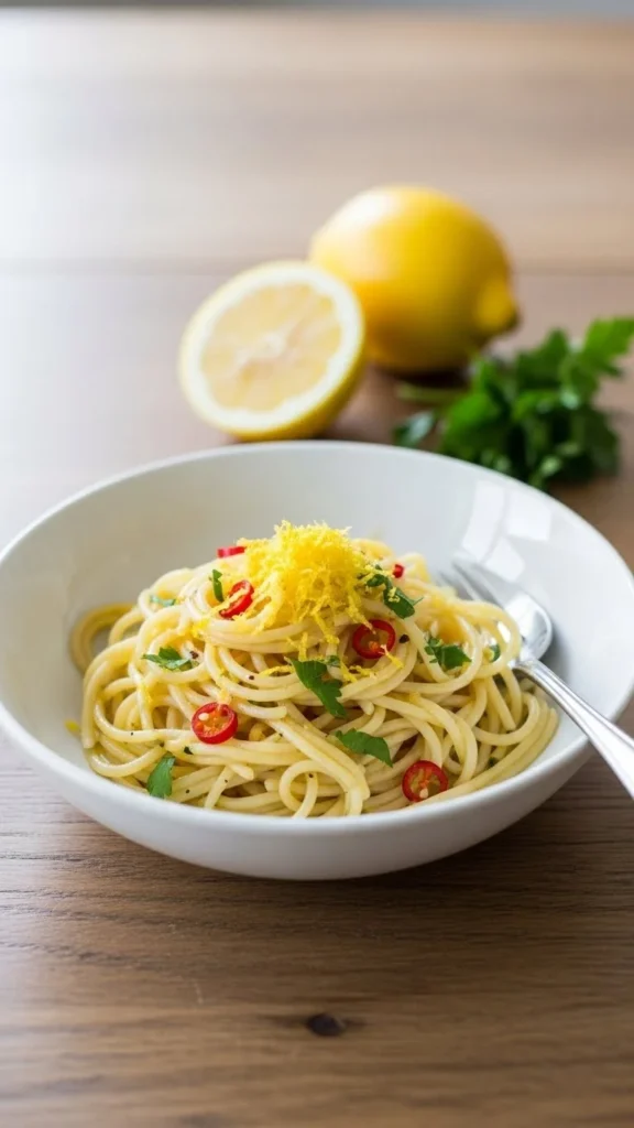 17. Vegetarian Lemon Pasta with Olive Oil and Chili Flakes