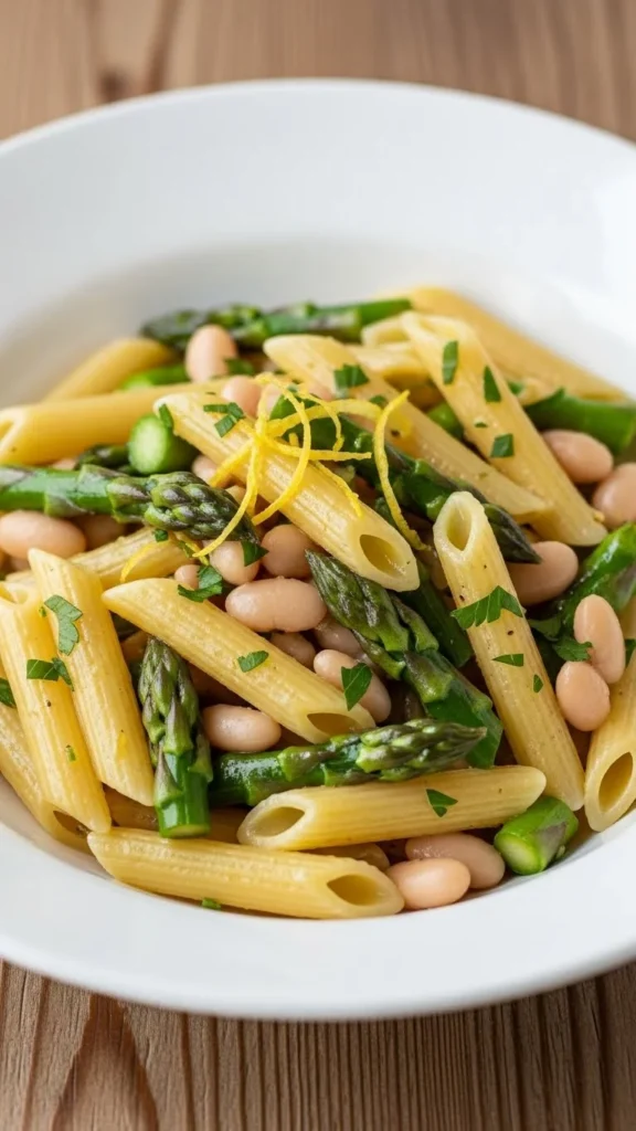 22. Pasta with Asparagus, White Beans, and Lemon