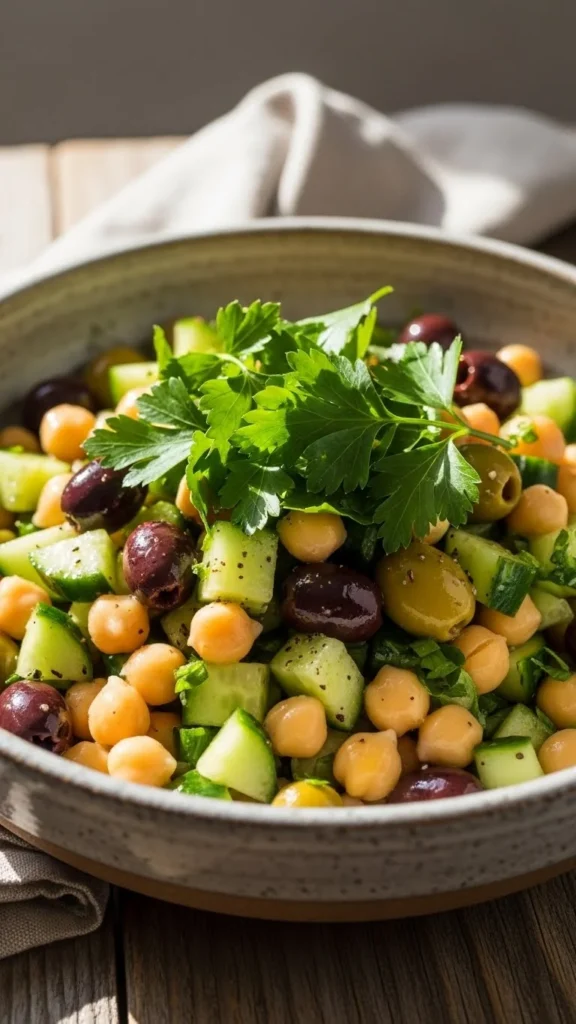 This salad focuses on freshness and crunch. Herbs do the heavy lifting, while chickpeas and seeds keep it satisfying.