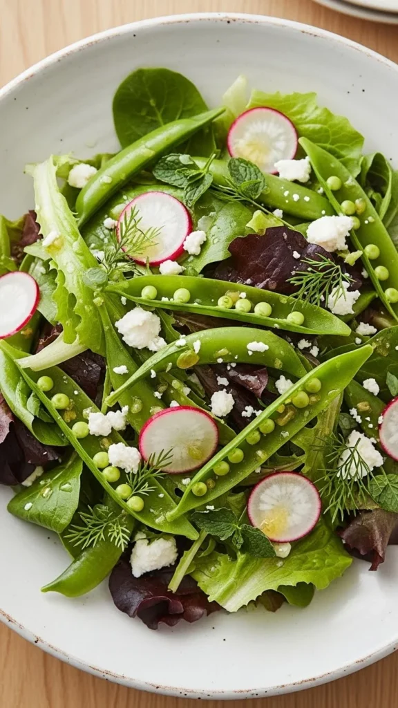 23. Snap Pea, Radish, and Feta Salad with Olive Oil and Lemon
