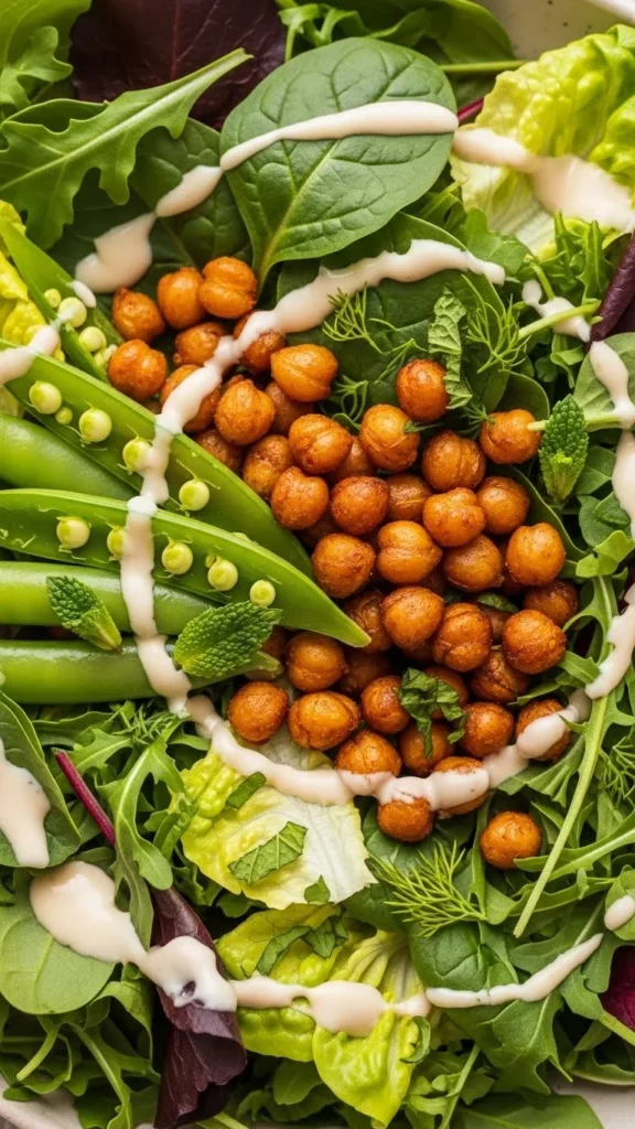 1. Crispy Chickpea and Snap Pea Lemon Tahini Salad