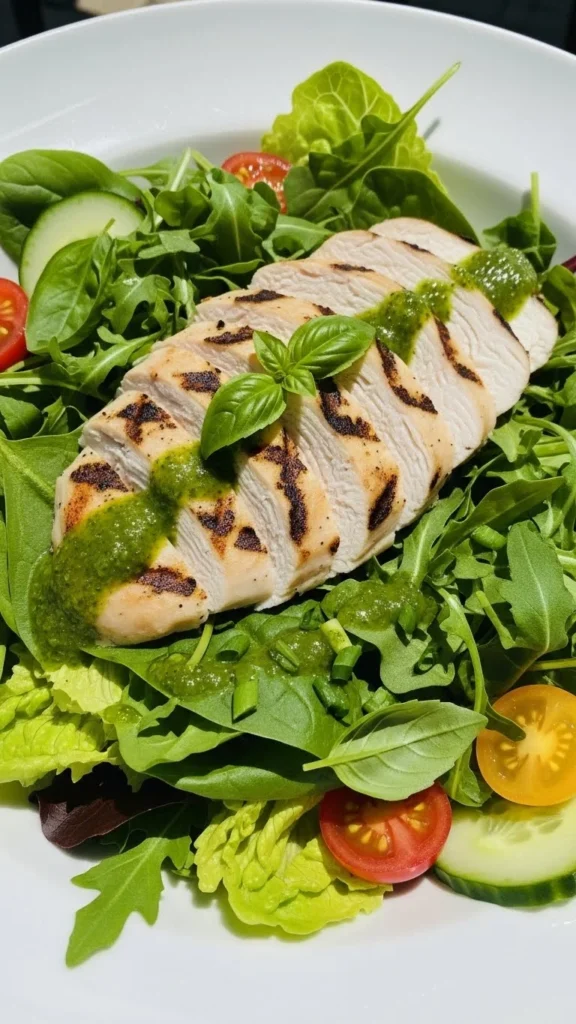 4. Grilled Chicken Spring Greens Salad with Basil Vinaigrette