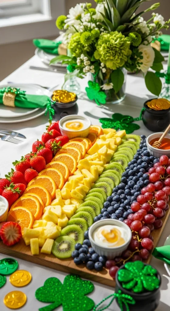 - Fill gaps with smaller fruits like berries to keep the board full.