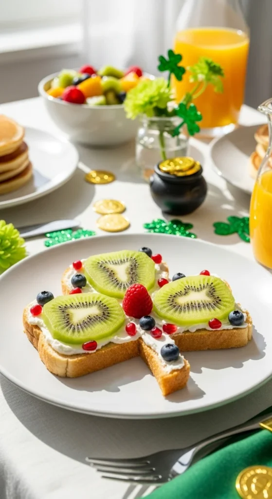 19. Shamrock Cream Cheese Toast with Fruit