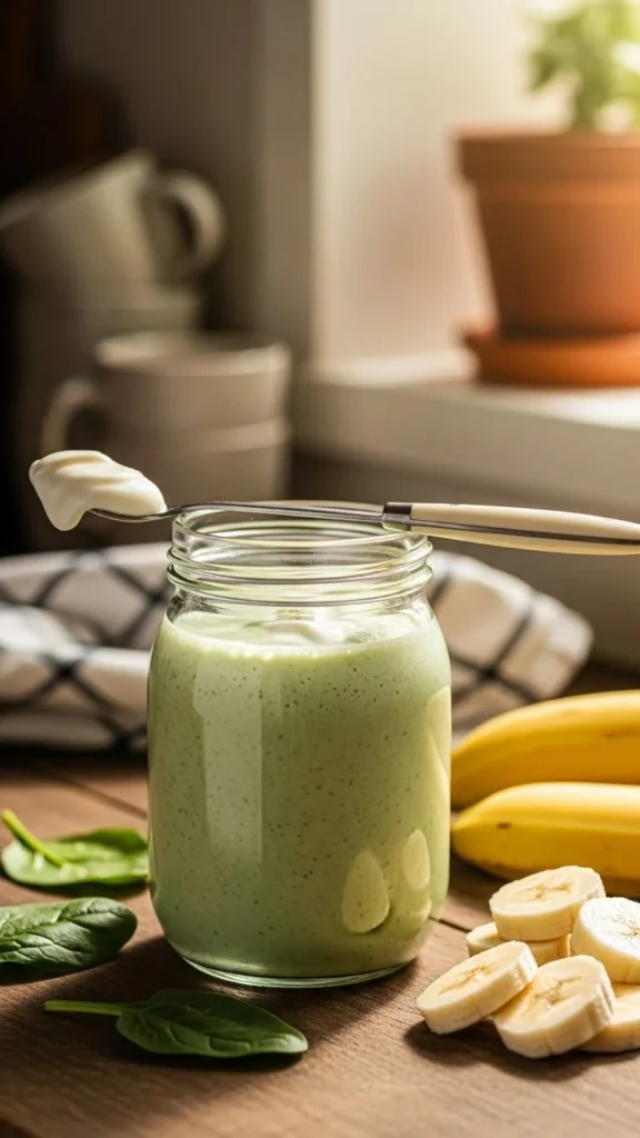 Greek yogurt adds body and a slightly tangy flavor to this smoothie, making it feel more filling. The banana balances the yogurt while spinach blends in quietly.