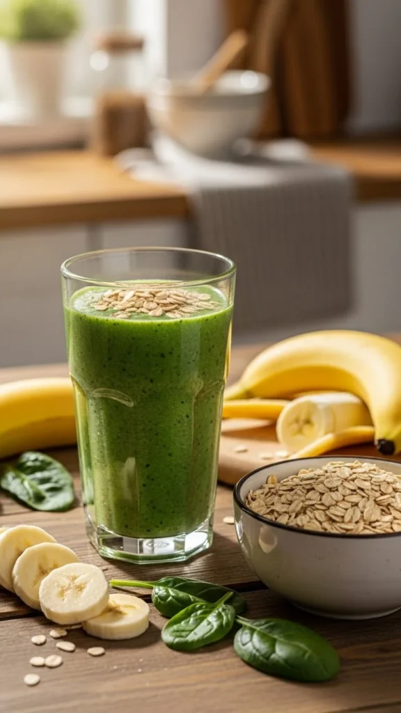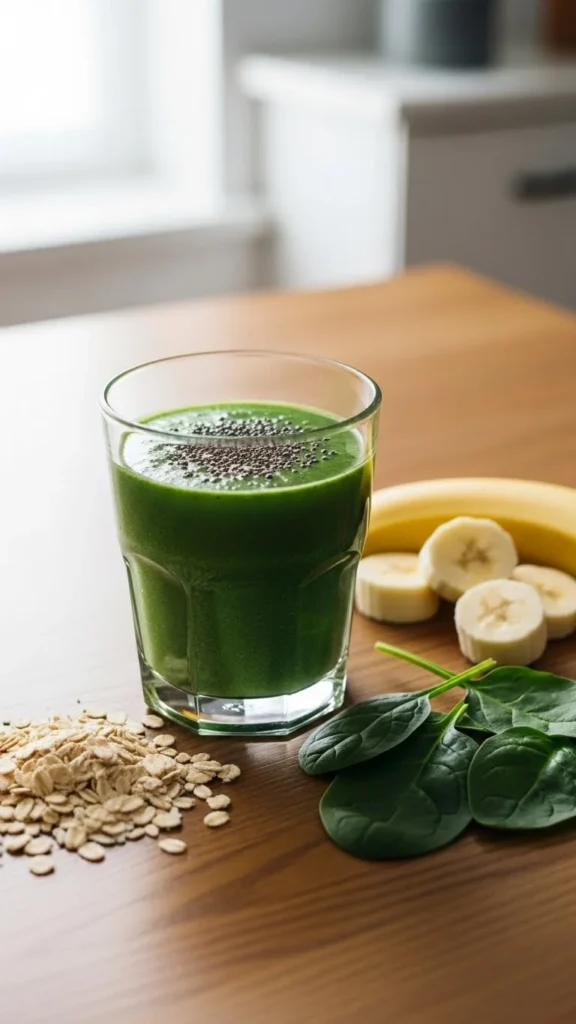 This smoothie keeps things familiar with a soft vanilla flavor while letting spinach do the coloring. It tastes mild, smooth, and slightly sweet, making it easy to enjoy even if green smoothies are not part of your routine yet.