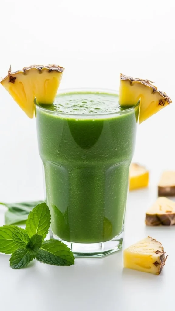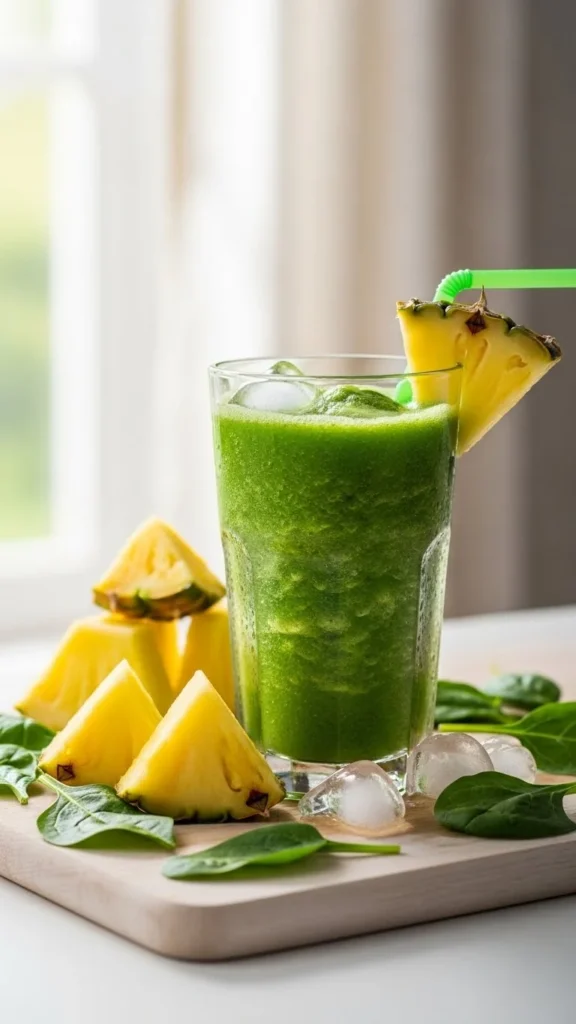 This smoothie combines spinach with pineapple to create a balance of fresh and fruity flavors. The pineapple masks the taste of greens while keeping the drink bright and refreshing.