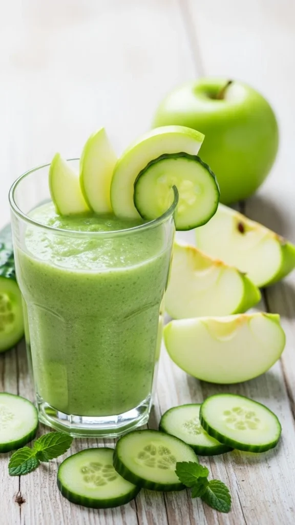 This smoothie focuses on freshness. Cucumber keeps it light, while green apple adds brightness. Spinach supports the color without taking over the taste.