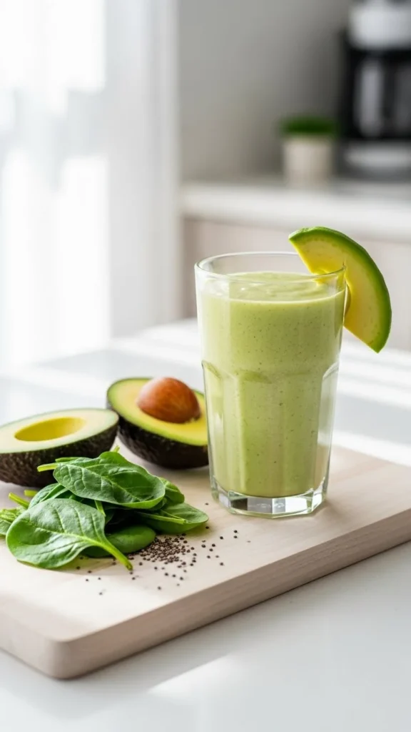 This smoothie focuses on texture rather than sweetness. Avocado adds a smooth and rich consistency, while spinach keeps the color vibrant. The flavor stays mild, making it easy to enjoy even if you are new to green smoothies.