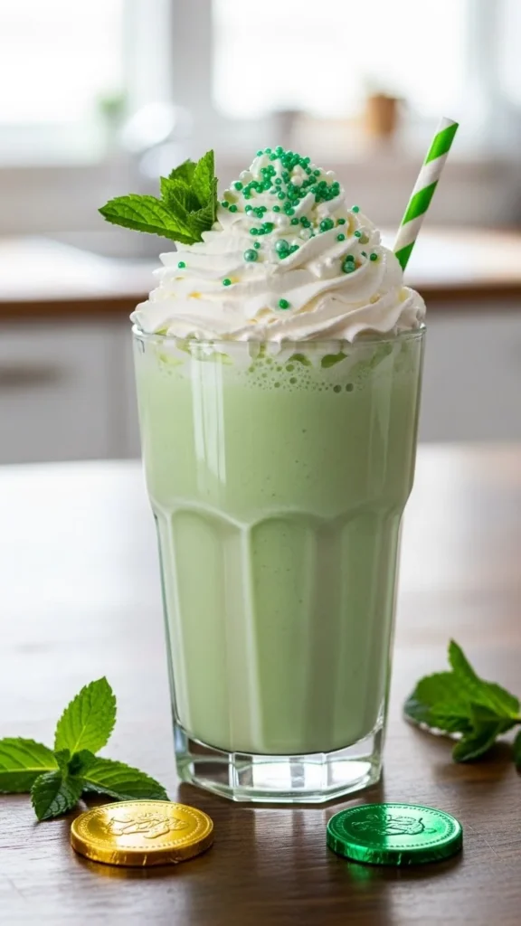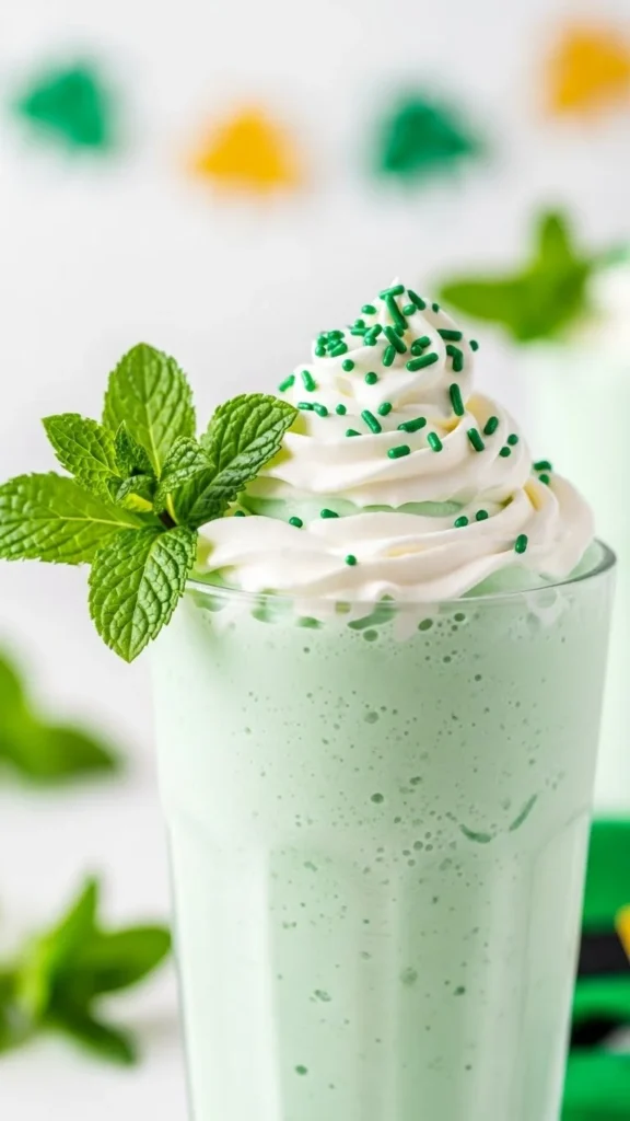 Serve right away in a clear glass so the green color stands out. You can add a small amount of whipped cream on top for a festive touch. This smoothie works well as a mid day treat or after lunch.
