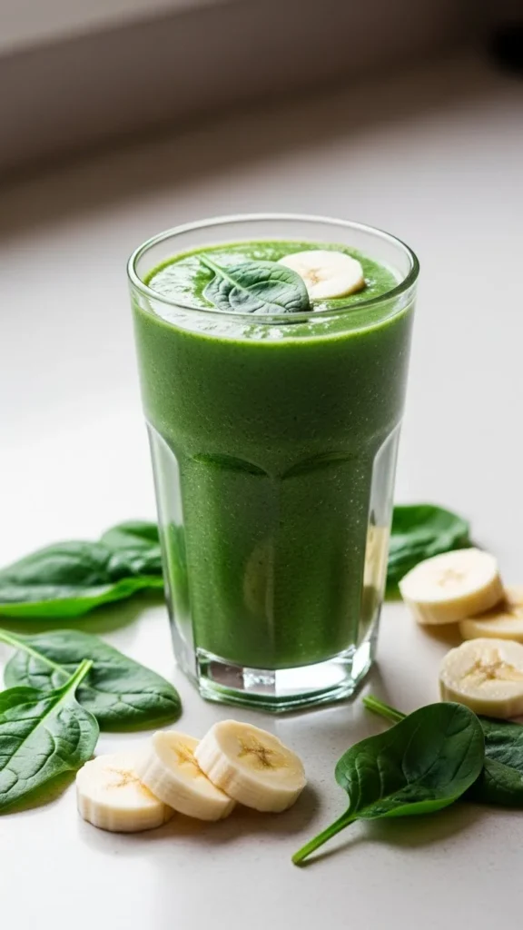 This is a basic green smoothie that keeps things simple. Banana leads the flavor, spinach blends in quietly, and the texture stays smooth without extra ingredients.