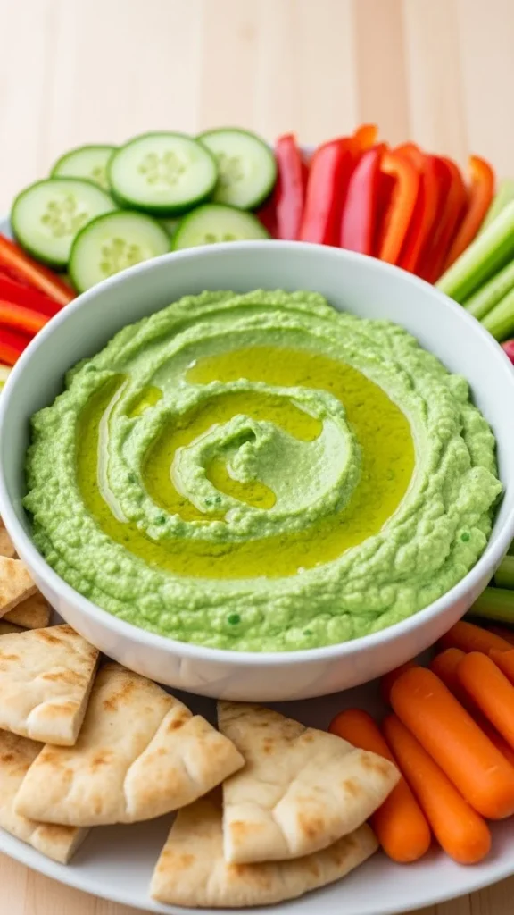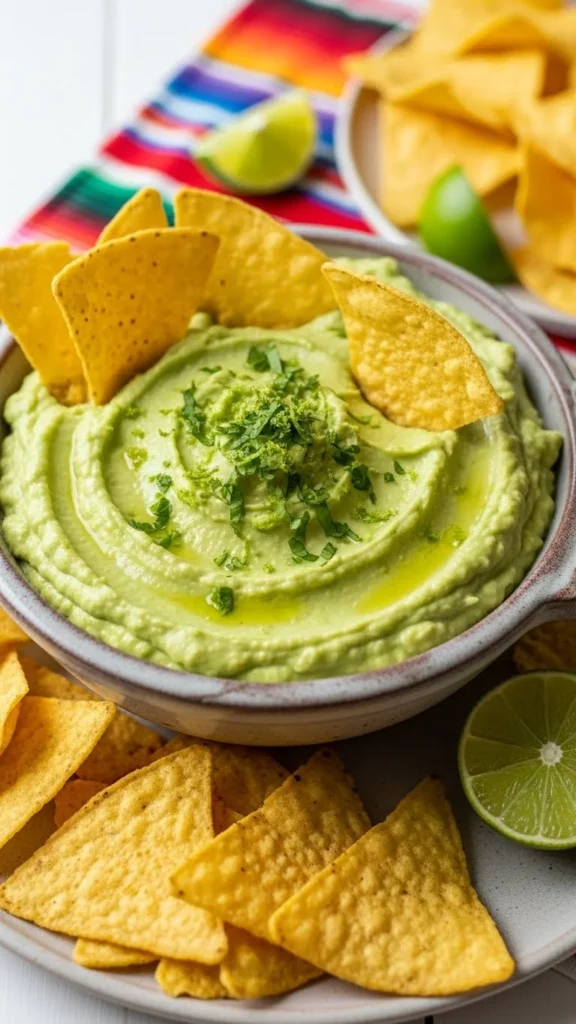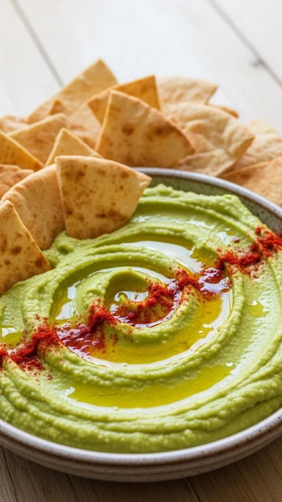 This dip blends hummus structure with avocado creaminess. It holds well and stays scoopable without needing dairy.