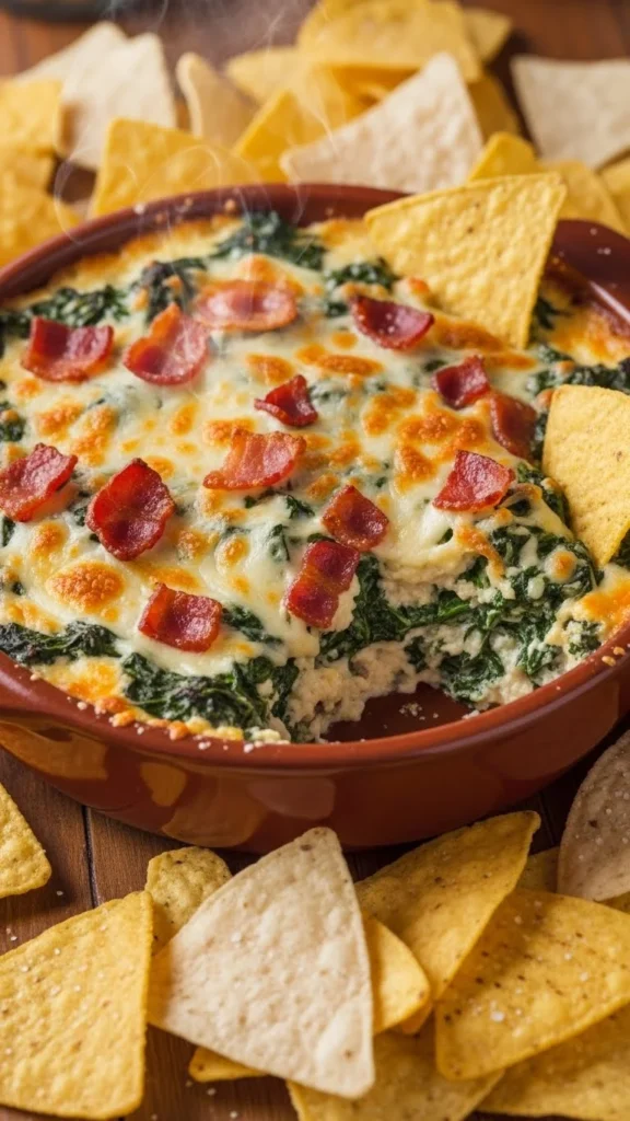 This dip balances salty bacon with spinach so it doesn’t feel overly rich. It’s a good option when you want something filling without being greasy.