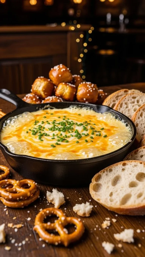 This dip is smooth, salty, and easy to keep warm. The beer adds depth without dominating the cheese, making it easy to pair with different dippers.