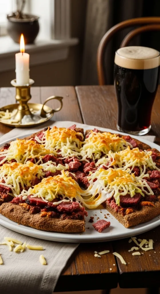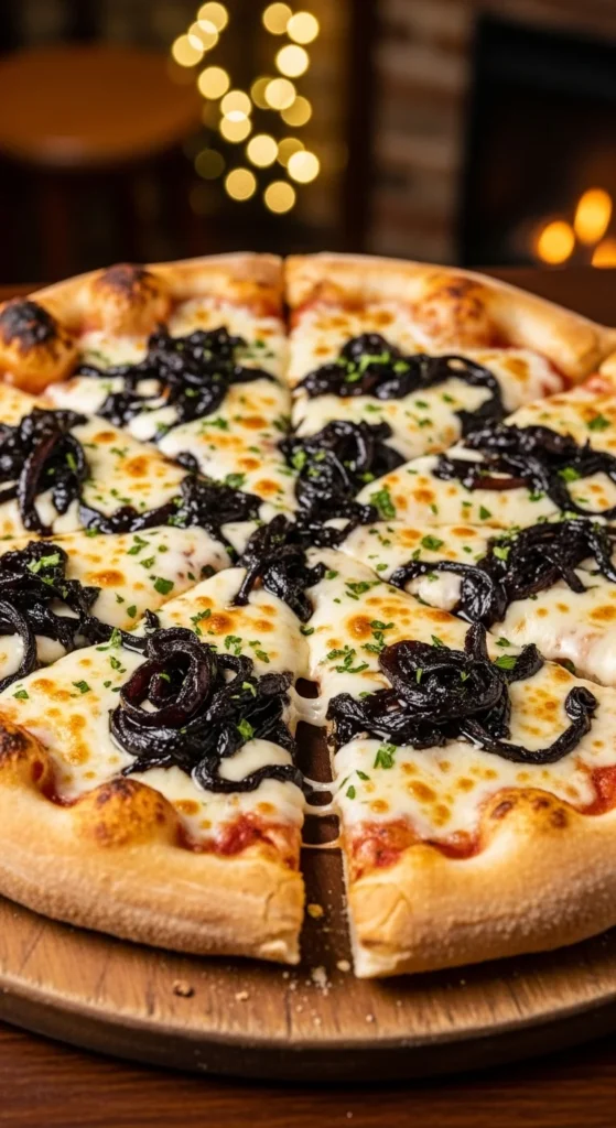 This pizza has a deeper, more savory flavor than most St. Patrick’s Day options. The onions cook slowly in Guinness until soft and slightly sweet, which balances perfectly with melted cheese. It’s a good choice when you want something that feels more grown-up without being complicated.